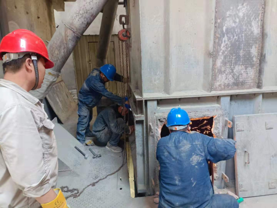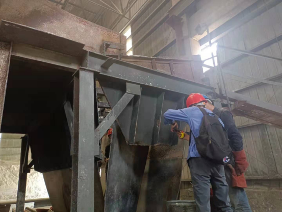 8月9日—11日,在1101皮帶電石渣上料口技改現(xiàn)場,同水泥磨檢修相比,這里由于上料環(huán)境,環(huán)境密閉、空氣不對流,狹小的空間,為了趕進(jìn)度,提高技改質(zhì)量,這讓檢修工人更加需要具有更強(qiáng)的團(tuán)結(jié)協(xié)作精神,他們在技術(shù)員的指揮下,分割、配對、焊接……生產(chǎn)裝置負(fù)責(zé)人丁伏山同志告訴大家:化工目前降負(fù)荷運(yùn)行,大家要咬緊牙關(guān)、克服困難,盡快完成技術(shù)改造項(xiàng)目,盡早投入生產(chǎn)。在現(xiàn)場他是指揮員又是戰(zhàn)斗員,每一個細(xì)節(jié)他都結(jié)合經(jīng)驗(yàn),進(jìn)一步對現(xiàn)場改造完善再完善,帶領(lǐng)員工經(jīng)得住高溫的“烤驗(yàn)”,經(jīng)得住連續(xù)作戰(zhàn)的勞累,于8月11晚20:30分,嚴(yán)格按工藝流程要求,完成此項(xiàng)技改項(xiàng)目,控制了下料的均勻性和連續(xù)性,確保了烘干破系統(tǒng)溫度和配料的穩(wěn)定性。