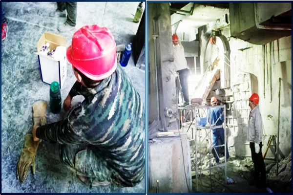 時(shí)光如白駒過(guò)隙,1#、2#電石爐已安全穩(wěn)定生產(chǎn)六年有余,爐內(nèi)碳磚、耐火磚燒損嚴(yán)重,已達(dá)到大修周期,加之五、六月份大量使用佳成礦山石料,爐內(nèi)鐵水多,四臺(tái)電石爐爐眼附近耐火磚、碳磚不同程度燒損,尤其是1#爐3#眼、2#爐3#眼,爐眼上方爐壁被鐵水擊穿,出爐工作不能正常進(jìn)行,嚴(yán)重影響到電石爐的安全穩(wěn)定運(yùn)行;為盡快消除制約安全生產(chǎn)穩(wěn)定運(yùn)行的隱患問題,為電石爐穩(wěn)定運(yùn)行提供強(qiáng)有力的保障,在公司統(tǒng)一部署下,自五月底開始,集各裝置維修工力量由電石一裝置組織對(duì)兩臺(tái)爐爐壁進(jìn)行修復(fù)。