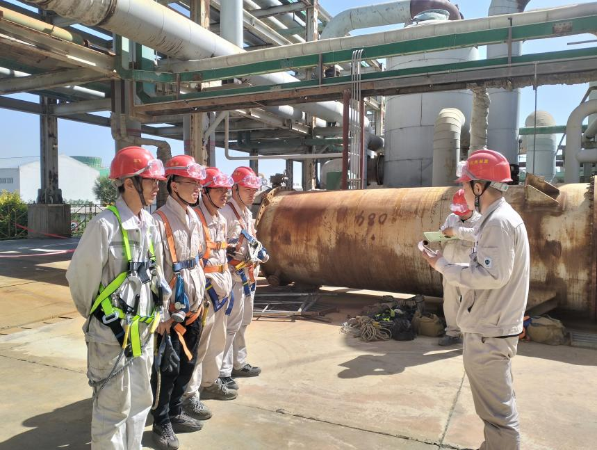 8點(diǎn)整,我們背上工具包一起出發(fā)。第一站是氯化氫裝置生產(chǎn)區(qū)。剛靠近設(shè)備,刺鼻的氣味就撲面而來,我們熟練地戴上防毒口罩,徑直走向壓力表,查看每一塊壓力表的數(shù)值是否準(zhǔn)確,表盤衛(wèi)生是否干凈,是否在有效檢定期內(nèi),有無泄漏。接著我們開始巡查現(xiàn)場的閥門及各類儀表的運(yùn)行狀態(tài),是否穩(wěn)定運(yùn)行,有無跑冒滴漏。9點(diǎn)30分,兩人趕到一次鹽水系統(tǒng)。這里的化鹽池pH計(jì)顯示值只有8,低于工藝要求。老王走到pH計(jì)探頭旁,發(fā)現(xiàn)探頭表面附著一層白色污垢!斑@是鹽水垢,會影響測量精度!彼┐骱梅雷o(hù)用品,用專用清洗劑清洗探頭,清洗探頭要輕柔,不能刮傷探頭,不然就廢了。清洗完畢后,他重新安裝探頭,等待數(shù)值穩(wěn)定:“現(xiàn)在pH值9.8,合格了”,老王一邊記錄數(shù)據(jù),一邊給我們講解:“這個PH計(jì)探頭容易結(jié)垢,這個儀表是關(guān)鍵設(shè)備必須時刻精準(zhǔn)”。
