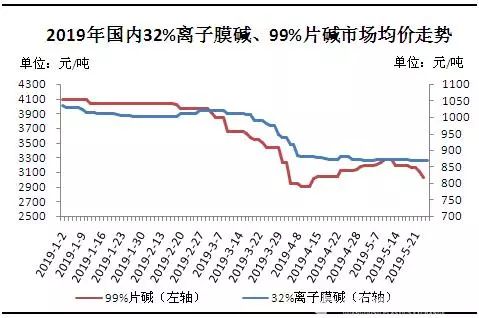 需求減少疊加現(xiàn)貨庫(kù)存壓力,燒堿價(jià)格再次陷入下跌走勢(shì)。5月下旬西北片堿廠家大幅下調(diào)出廠報(bào)價(jià),從市場(chǎng)人士了解,最低出廠價(jià)已經(jīng)跌到2000元/噸,業(yè)者心態(tài)悲觀,部分地區(qū)甚至呈現(xiàn)有價(jià)無(wú)市的狀態(tài)。