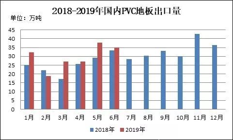圖9 2018-2019年國內(nèi)PVC地板出口量