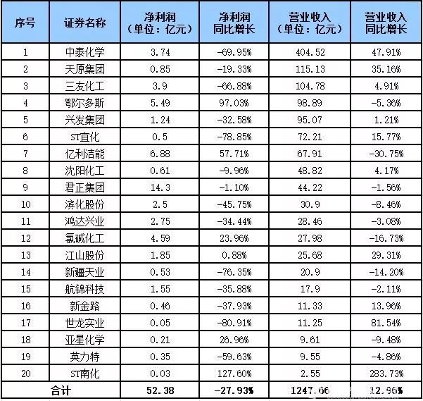 上市公司2019年度的半年報(bào)已披露完畢。廣東塑料交易所統(tǒng)計(jì)了新疆天業(yè)、中泰化學(xué)、英力特、鴻達(dá)興業(yè)等20家氯堿行業(yè)上市公司上半年的業(yè)績(jī)情況,合計(jì)實(shí)現(xiàn)營(yíng)收1247.66億元,同比增長(zhǎng)12.96%,凈利潤(rùn)52.38億元,同比下降27.93%;雖然利潤(rùn)出現(xiàn)下滑,但上半年這20家上市公司全部實(shí)現(xiàn)盈利。