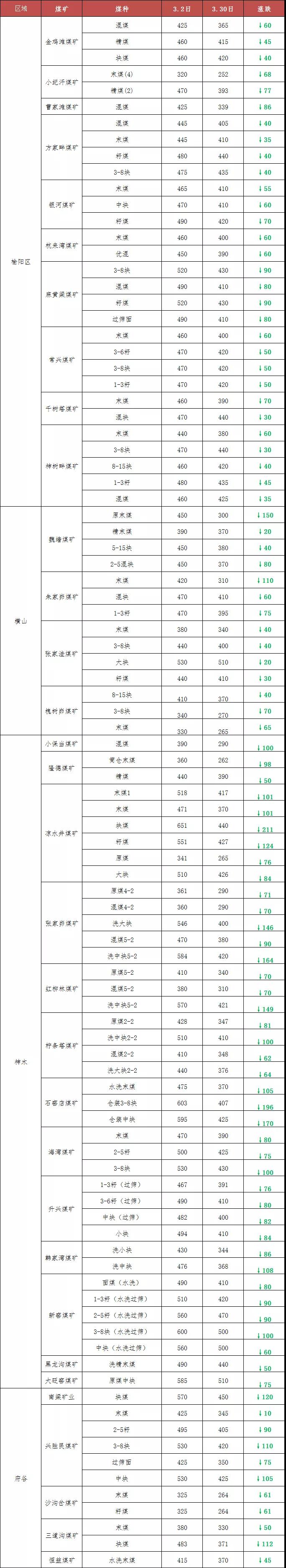▏倒工作面煤礦:創(chuàng)威煤礦、崔家溝煤礦、石巖溝煤礦 狼窩渠煤礦:接領(lǐng)導(dǎo)通知,3月30日、31日兩天綜采正常生產(chǎn)出煤,31日晚上井下停止開始全面清掃井下衛(wèi)生。 近日,榆林煤價(jià)持續(xù)下跌,且有繼續(xù)下跌的可能。有客戶向榆林煤炭交易中心反映,最近下游終端用戶壓價(jià)幅度較狠,個(gè)別用戶壓價(jià)幅度達(dá)到90元/噸左右。 下游如此壓價(jià),這無疑是倒逼產(chǎn)地煤礦繼續(xù)降價(jià)。 據(jù)榆林煤炭交易中心了解,從3月初到現(xiàn)在,榆林許多煤礦降幅超100元/噸,個(gè)別煤礦降幅甚至快接近200元/噸。雖然煤價(jià)一直下跌,但據(jù)業(yè)內(nèi)人士分析,目前煤價(jià)還未探底,仍有幾十元的下降空間。