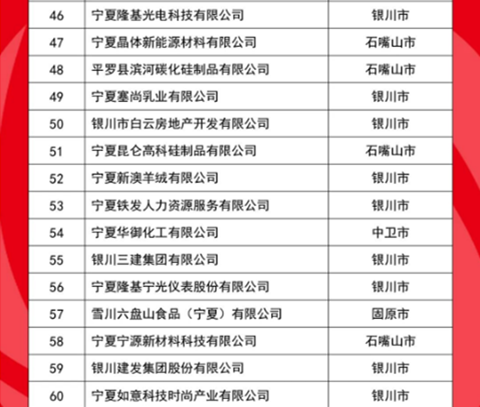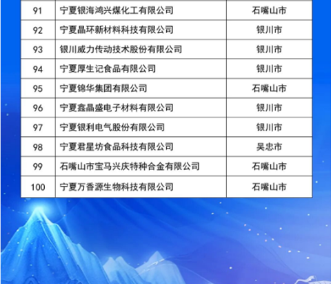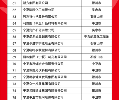 10月21日,2025寧夏民營企業(yè)100強發(fā)布會在吳忠市舉行,發(fā)布了“2025寧夏民營企業(yè)100強榜單”,入圍門檻5.84億元,入圍企業(yè)營收總額為3513.79億元,資產(chǎn)總額5755.01億元,利潤總額506.80億元。其中,制造業(yè)有73家,房地產(chǎn)業(yè)有11家,建筑業(yè)、批發(fā)和零售業(yè)、電力熱力燃氣及水生產(chǎn)供應(yīng)業(yè)各有4家,交通運輸、倉儲和郵政業(yè)有2家,商務(wù)服務(wù)業(yè)有1家,農(nóng)、林、牧、漁業(yè)有1家。有28家企業(yè)涉及新型材料產(chǎn)業(yè),有18家企業(yè)涉及風(fēng)電、光伏、氫能等清潔能源產(chǎn)業(yè)。會上,還發(fā)布了“2025寧夏制造業(yè)民營企業(yè)100強榜單”和《2025寧夏民營企業(yè)100強調(diào)研分析報告》。